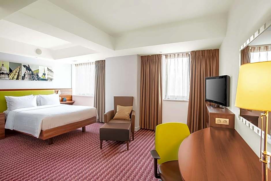 Queen Room Premium View Non Smoking includes a queen-size bed 150-154 width plus desk, hairdryer, tea and coffee making facilities , ironing set, safe, and slippers and is Wheelchair-accessible.